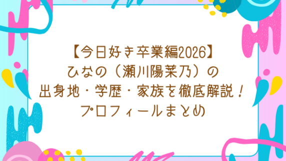 【今日好き卒業編2026】ひなの(瀬川陽菜乃)の出身地・学歴・家族を徹底解説!プロフィールまとめ